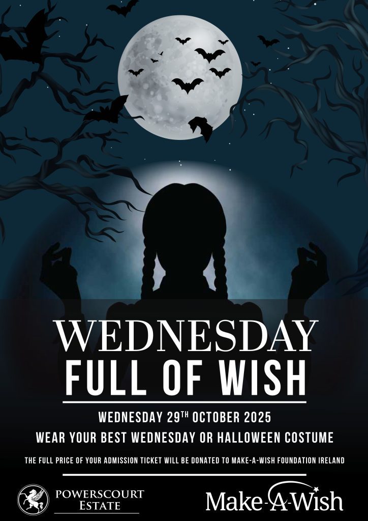 Visitors are invited to step into the spirit of Samhain by dressing in their best Wednesday or Halloween costume. Those who do will help raise funds for Make-A-Wish Foundation Ireland, which grants life-changing wishes for children with critical illnesses.